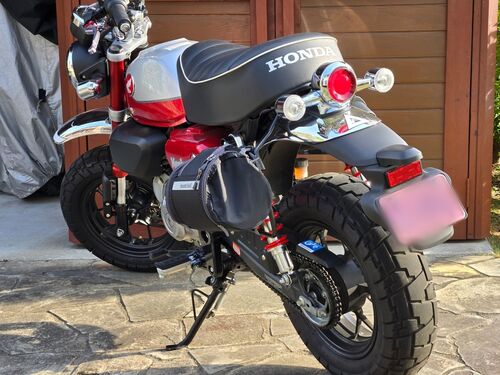 モンキー125にモンベルの自転車用フロントバッグを付けてみる 装着状態 自転車からバッグを移植してみよう モンキー125にモンベルの自転車用フロントバッグを付けてみる モンキー125での通勤の利便性UPのために、ワイヤーロックとヘルメット収納袋が入るだけ…